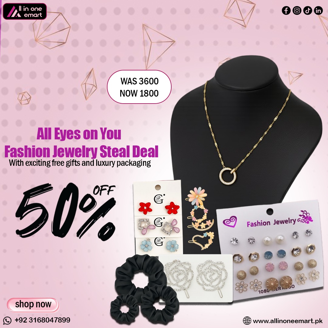 ✨ Get ready to shine with this exclusive jewelry bundle now available at a steal price of just Rs. 1800 (was Rs. 3600)!